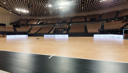 Bâtiment inédit à vocations sportives, culturelles et événementielles en Mayenne, à Laval. Sur 8,4 hectares, il regroupe trois salles multifonctions, totalisant plus de 10 000 m². Les salles accueillent de la boxe, des sports collectifs, des concerts et de grands événements culturels. L’Espace Mayenne a également été reconnu comme centre de préparation aux Jeux Olympiques de 2024 grâce à son mur d’escalade de niveau international.