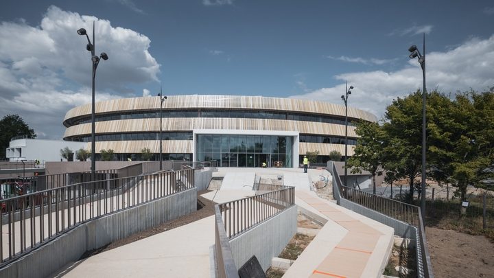 Ce campus est certifié NF HQE Bâtiment tertiaire et possède en toiture une centrale solaire en autoconsommation d’une puissance de 150 kW.